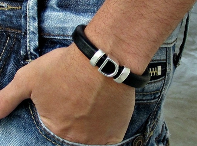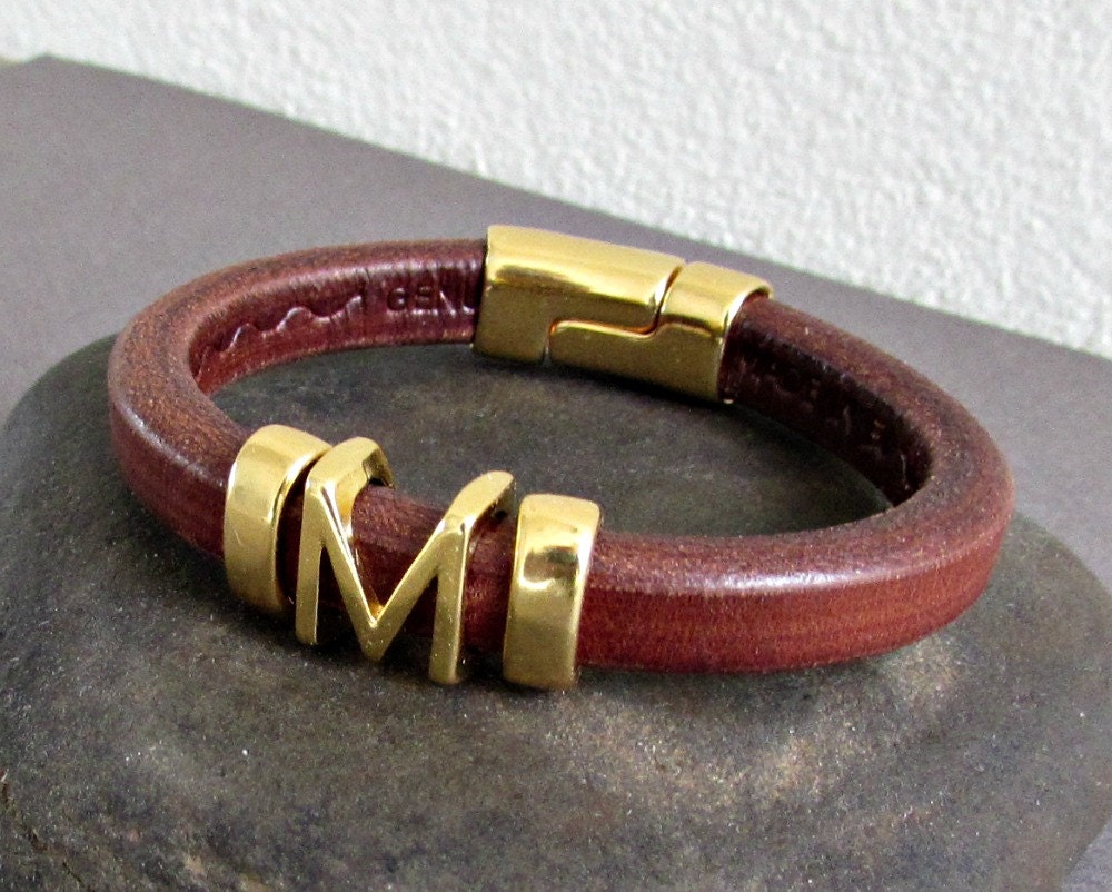Mens Personalized Leather Bracelet Gold Silver Initial Monogram Bracelet customized to your wrist