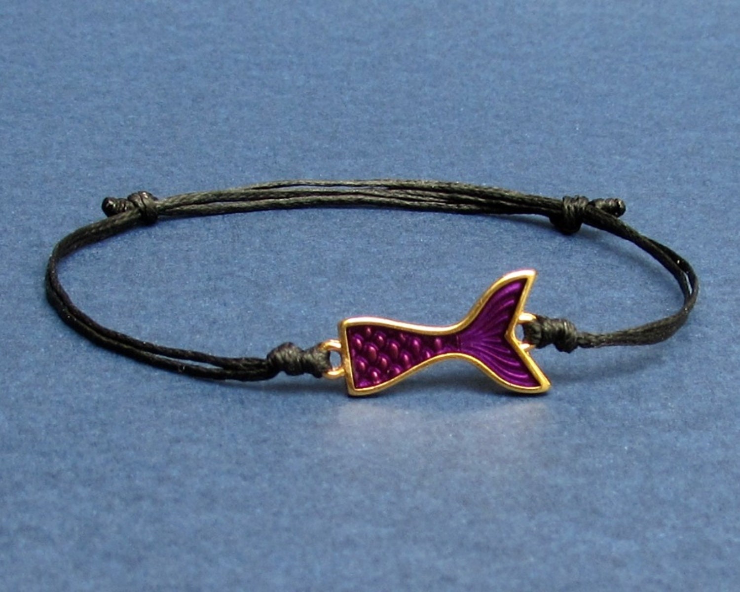 Bracelet or anklet for men and women - cord anklet with a gold whale tail charm and enamel. The cord is made of waxed cotton You can request a different cord color from the colors shown in the 4th picture. Available 10 colors