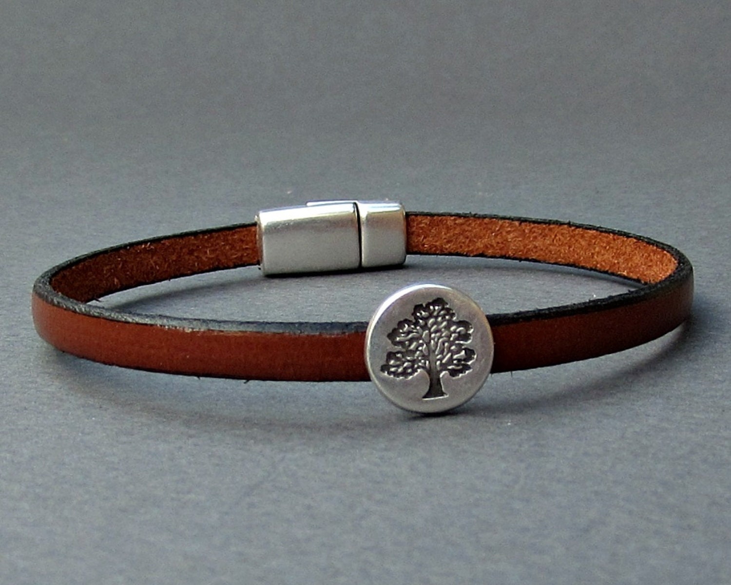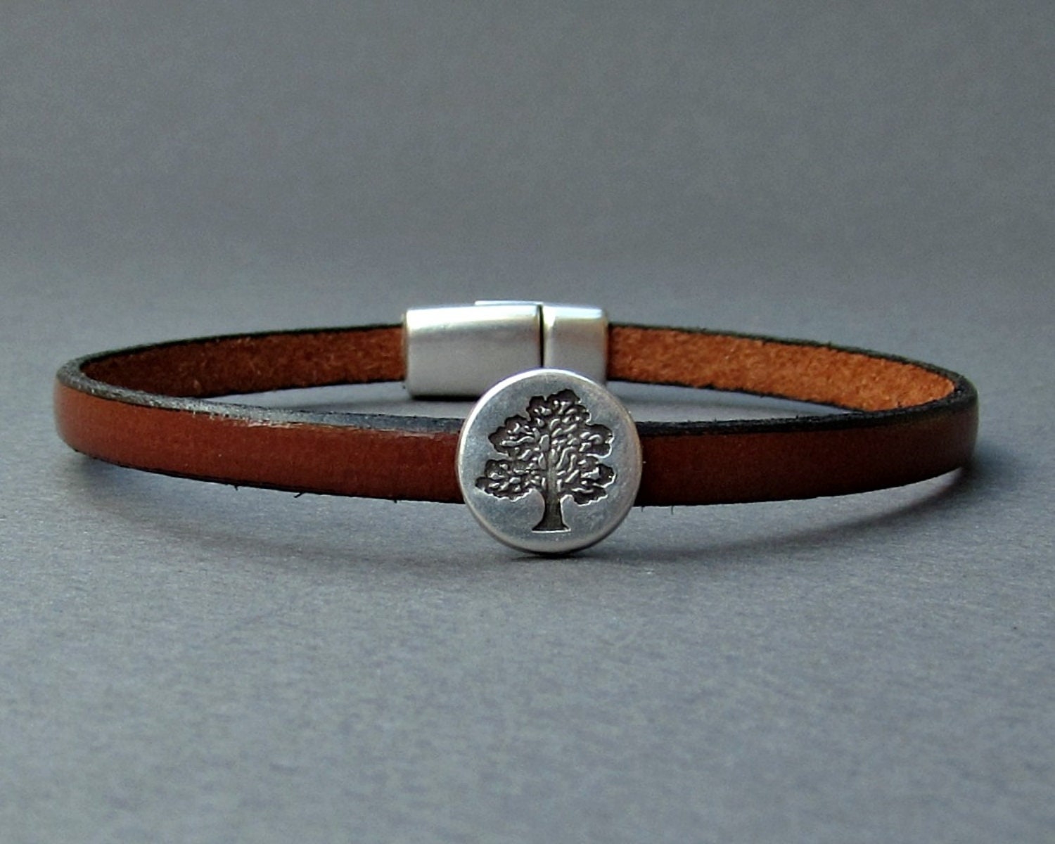 Tree Of Life Bracelet Leather Bracelet Cuff Unisex Gift Customized On Your Wrist