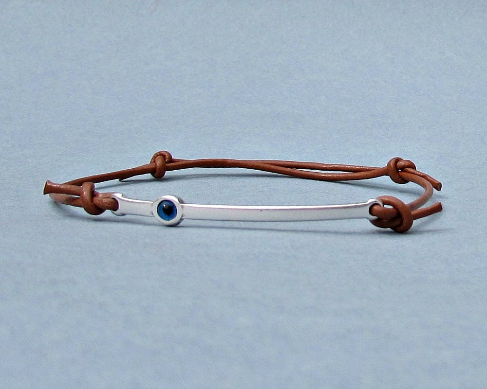 AVAILABLE FEDEX EXPRESS SHIPPING UPGRADE 2-4 WORKING DAYS Evil Eye, Silver Bar Bracelet, Unisex Leather Cord Bracelet His And Hers Silver Dainty Bracelet Adjustable