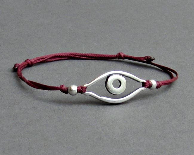 Bracelet or anklet for men and women - cord anklet with a antique silver evil eye charm. The cord is made of waxed cotton You can request a different cord color from the colors shown in the 3rd picture. Available 10 colors